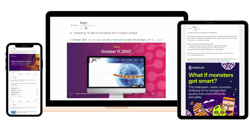 At Eseye, I played a key role in shaping and executing the monthly social media plan for LinkedIn. My responsibilities ranged from planning to hands-on content production, ensuring consistent brand messaging and engagement.